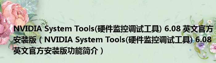 导读 大家好,关于NVIDIA System Tools(硬件监控调试工具) 6 08 英文官方安装版,NVIDIA System Tools(硬件监控调试工具) 6 08 英文官方