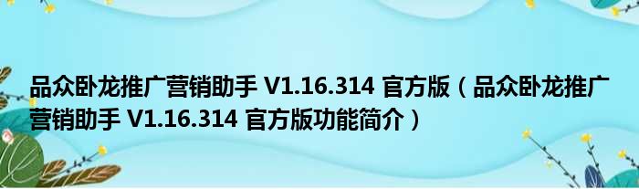 品众卧龙推广营销助手 V1.16.314 官方版(品众卧龙推广营销助手 V1.16.314 官方版功能简介)
