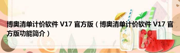 博奥清单计价软件 V17 官方版(博奥清单计价软件 V17 官方版功能简介)