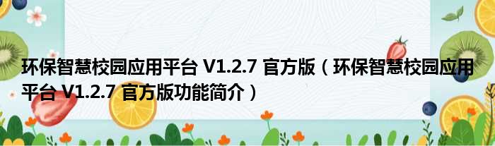 环保智慧校园应用平台 V1.2.7 官方版(环保智慧校园应用平台 V1.2.7 官方版功能简介)