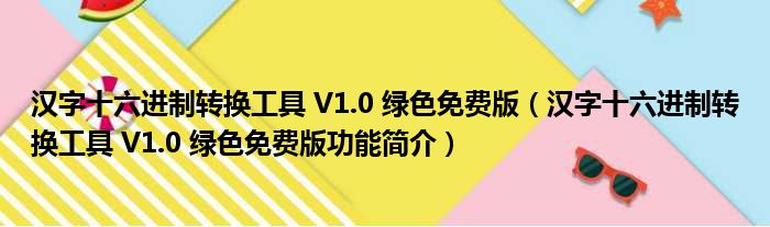 汉字十六进制转换工具 V1.0 绿色免费版(汉字十六进制转换工具 V1.0 绿色免费版功能简介)