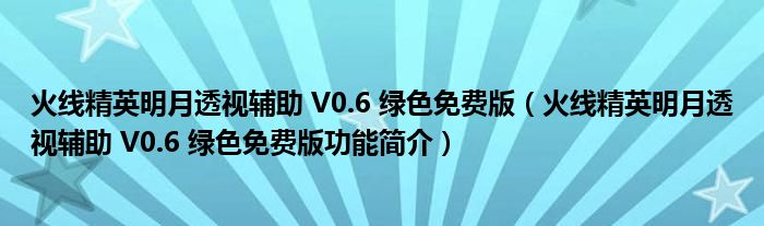 火线精英明月透视辅助 V0.6 绿色免费版(火线精英明月透视辅助 V0.6 绿色免费版功能简介)