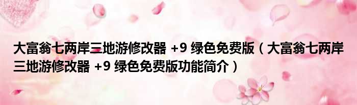 大富翁七两岸三地游修改器 +9 绿色免费版(大富翁七两岸三地游修改器 +9 绿色免费版功能简介)