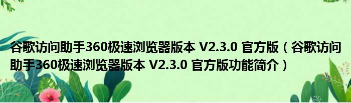谷歌访问助手360极速浏览器版本 V2.3.0 官方版(谷歌访问助手360极速浏览器版本 V2.3.0 官方版功能简介)