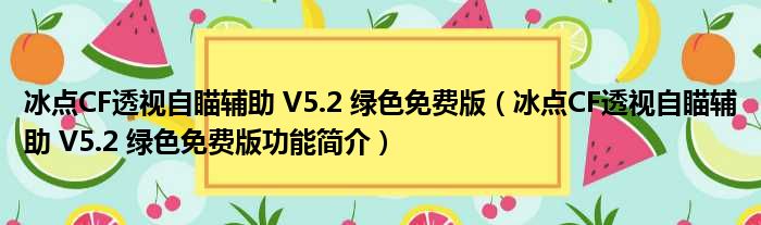 冰点CF透视自瞄辅助 V5.2 绿色免费版(冰点CF透视自瞄辅助 V5.2 绿色免费版功能简介)