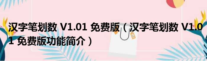 汉字笔划数 V1.01 免费版(汉字笔划数 V1.01 免费版功能简介)