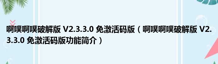 啊噗啊噗破解版 V2.3.3.0 免激活码版(啊噗啊噗破解版 V2.3.3.0 免激活码版功能简介)