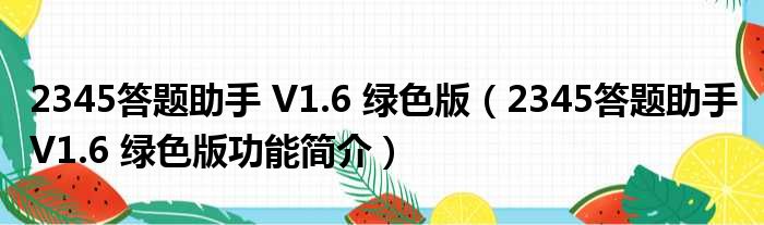 导读 大家好,关于2345答题助手 V1 6 绿色版,2345答题助手 V1 6 绿色版功能简介这个很多人还不知道,小勒来为大家解答以上的问题,现在让我们