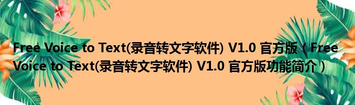 Free Voice to Text(录音转文字软件) V1.0 官方版(Free Voice to Text(录音转文字软件) V1.0 官方版功能简介)