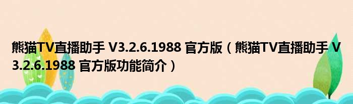 熊猫TV直播助手 V3.2.6.1988 官方版(熊猫TV直播助手 V3.2.6.1988 官方版功能简介)