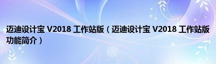 迈迪设计宝 V2018 工作站版(迈迪设计宝 V2018 工作站版功能简介)