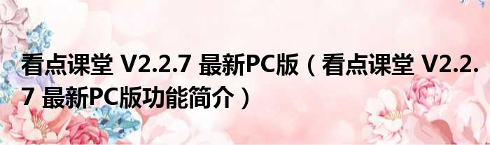 看点课堂 V2.2.7 最新PC版(看点课堂 V2.2.7 最新PC版功能简介)