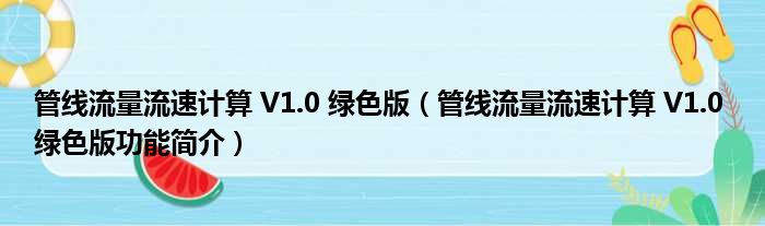 管线流量流速计算 V1.0 绿色版(管线流量流速计算 V1.0 绿色版功能简介)