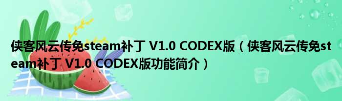 导读 大家好,关于侠客风云传免steam补丁 V1 0 CODEX版,侠客风云传免steam补丁 V1 0 CODEX版功能简介这个很多人还不知道,小勒来为大家解答以