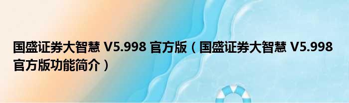 导读 大家好,关于国盛证券大智慧 V5 998 官方版,国盛证券大智慧 V5 998 官方版功能简介这个很多人还不知道,小勒来为大家解答以上的问题,现