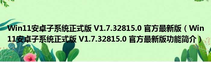 Win11安卓子系统正式版 V1.7.32815.0 官方最新版(Win11安卓子系统正式版 V1.7.32815.0 官方最新版功能简介)
