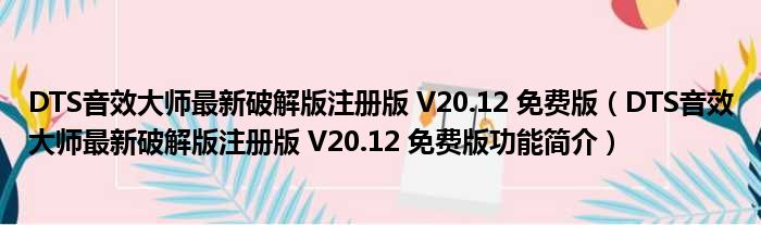 DTS音效大师最新破解版注册版 V20.12 免费版(DTS音效大师最新破解版注册版 V20.12 免费版功能简介)