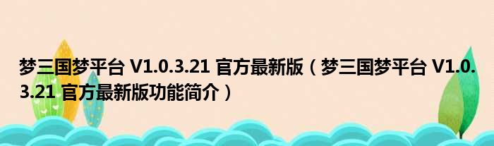 梦三国梦平台 V1.0.3.21 官方最新版(梦三国梦平台 V1.0.3.21 官方最新版功能简介)