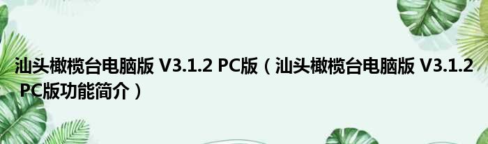汕头橄榄台电脑版 V3.1.2 PC版(汕头橄榄台电脑版 V3.1.2 PC版功能简介)