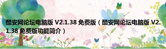 导读 大家好,关于酷安网论坛电脑版 V2 1 38 免费版,酷安网论坛电脑版 V2 1 38 免费版功能简介这个很多人还不知道,小勒来为大家解答以上的问
