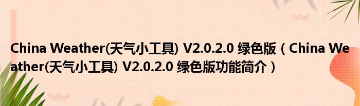 China Weather(天气小工具) V2.0.2.0 绿色版(China Weather(天气小工具) V2.0.2.0 绿色版功能简介)