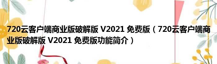 720云客户端商业版破解版 V2021 免费版(720云客户端商业版破解版 V2021 免费版功能简介)