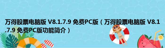 万得股票电脑版 V8.1.7.9 免费PC版(万得股票电脑版 V8.1.7.9 免费PC版功能简介)