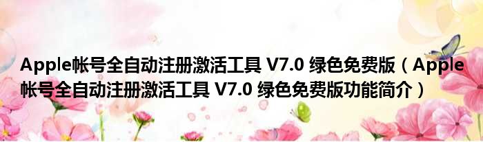Apple帐号全自动注册激活工具 V7.0 绿色免费版(Apple帐号全自动注册激活工具 V7.0 绿色免费版功能简介)