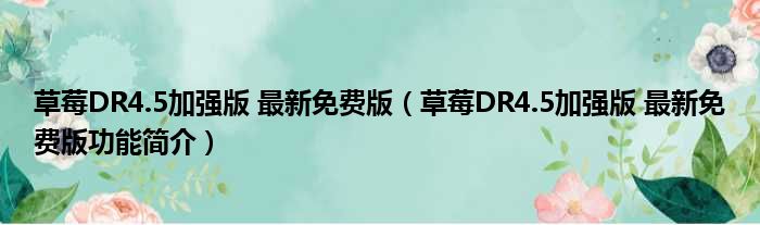 草莓DR4.5加强版 最新免费版(草莓DR4.5加强版 最新免费版功能简介)