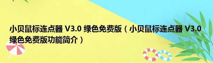导读 大家好,关于小贝鼠标连点器 V3 0 绿色免费版,小贝鼠标连点器 V3 0 绿色免费版功能简介这个很多人还不知道,小勒来为大家解答以上的问题