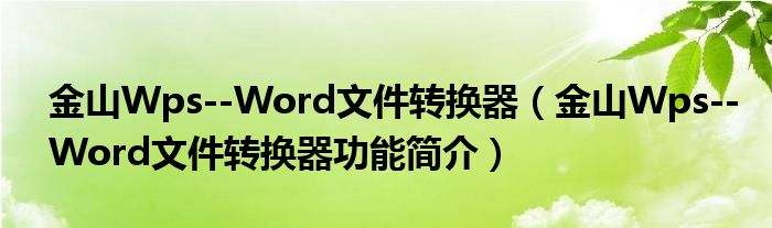 金山Wps--Word文件转换器(金山Wps--Word文件转换器功能简介)