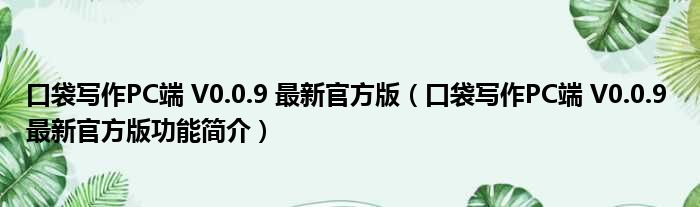 口袋写作PC端 V0.0.9 最新官方版(口袋写作PC端 V0.0.9 最新官方版功能简介)