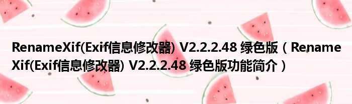 导读 大家好,关于RenameXif(Exif信息修改器) V2 2 2 48 绿色版,RenameXif(Exif信息修改器) V2 2 2 48 绿色版功能简介这个很多人还不知道,小