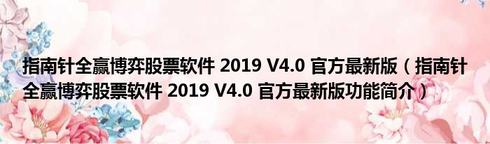 指南针全赢博弈股票软件 2019 V4.0 官方最新版(指南针全赢博弈股票软件 2019 V4.0 官方最新版功能简介)