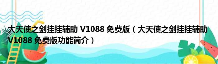 大天使之剑挂挂辅助 V1088 免费版(大天使之剑挂挂辅助 V1088 免费版功能简介)