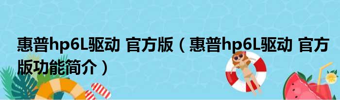 惠普hp6L驱动 官方版(惠普hp6L驱动 官方版功能简介)