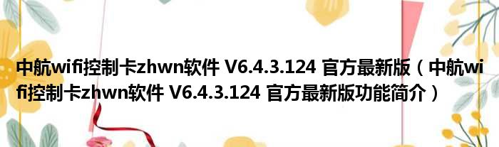 中航wifi控制卡zhwn软件 V6.4.3.124 官方最新版(中航wifi控制卡zhwn软件 V6.4.3.124 官方最新版功能简介)