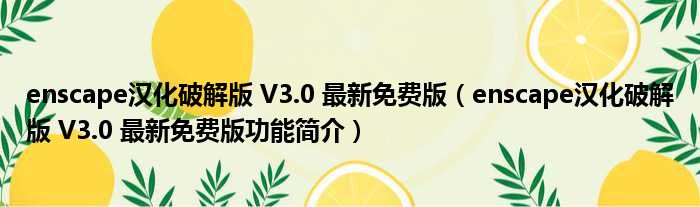 enscape汉化破解版 V3.0 最新免费版(enscape汉化破解版 V3.0 最新免费版功能简介)