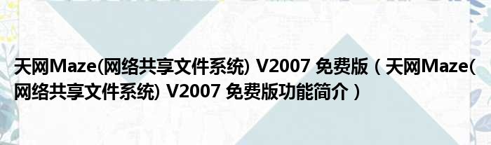 天网Maze(网络共享文件系统) V2007 免费版(天网Maze(网络共享文件系统) V2007 免费版功能简介)