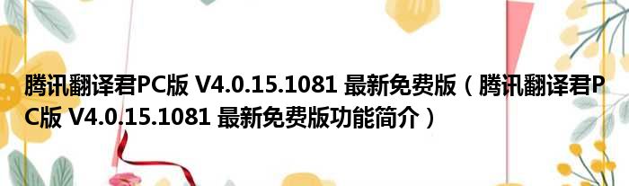 腾讯翻译君PC版 V4.0.15.1081 最新免费版(腾讯翻译君PC版 V4.0.15.1081 最新免费版功能简介)