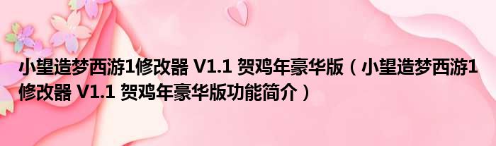 小望造梦西游1修改器 V1.1 贺鸡年豪华版(小望造梦西游1修改器 V1.1 贺鸡年豪华版功能简介)