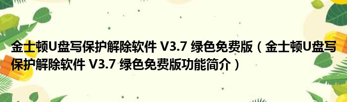金士顿U盘写保护解除软件 V3.7 绿色免费版(金士顿U盘写保护解除软件 V3.7 绿色免费版功能简介)