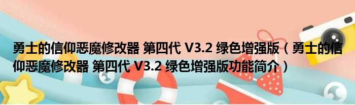 勇士的信仰恶魔修改器 第四代 V3.2 绿色增强版(勇士的信仰恶魔修改器 第四代 V3.2 绿色增强版功能简介)