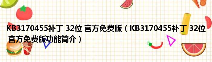 KB3170455补丁 32位 官方免费版(KB3170455补丁 32位 官方免费版功能简介)