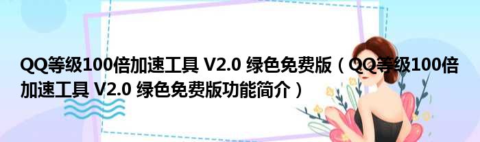 QQ等级100倍加速工具 V2.0 绿色免费版(QQ等级100倍加速工具 V2.0 绿色免费版功能简介)