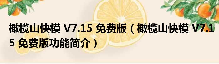 橄榄山快模 V7.15 免费版(橄榄山快模 V7.15 免费版功能简介)