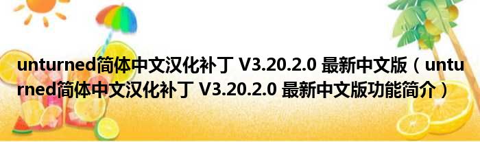 导读 大家好,关于unturned简体中文汉化补丁 V3 20 2 0 最新中文版,unturned简体中文汉化补丁 V3 20 2 0 最新中文版功能简介这个很多人还不
