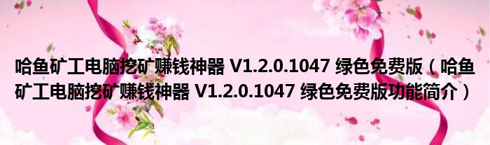 哈鱼矿工电脑挖矿赚钱神器 V1.2.0.1047 绿色免费版(哈鱼矿工电脑挖矿赚钱神器 V1.2.0.1047 绿色免费版功能简介)