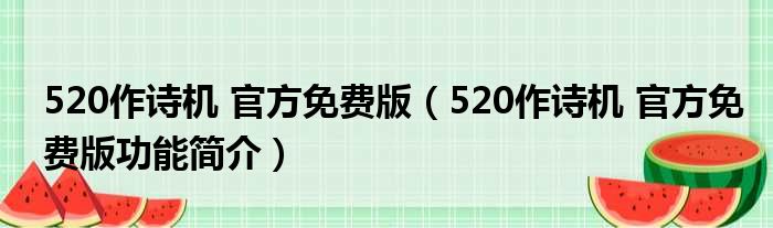 520作诗机 官方免费版(520作诗机 官方免费版功能简介)