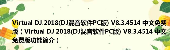 Virtual DJ 2018(DJ混音软件PC版) V8.3.4514 中文免费版(Virtual DJ 2018(DJ混音软件PC版) V8.3.4514 中文免费版功能简介)